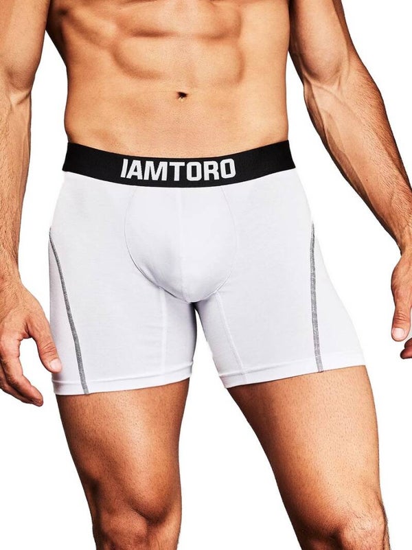 Boxershorts met de perfecte fitting die niet afzakken en op hun plaats blijven zitten. Of je nu fanatiek aan het sporten of hard aan het werk bent. Laat je van je beste kant zien in boxershorts van IAMTORO: door de belijning komen je been- en bilspieren extra mooi uit. IAMTORO is een strijdkreet voor mannen die hun dromen najagen en nooit opgeven. Om dagelijks het beste uit jezelf te kunnen halen, heb je wel het juiste harnas nodig en dat begint bij je ondergoed. Als dat goed zit én staat, dan komt de rest vanzelf. De heren boxershorts van IAMTORO zijn atletisch gesneden en aan de achterkant iets hoger.