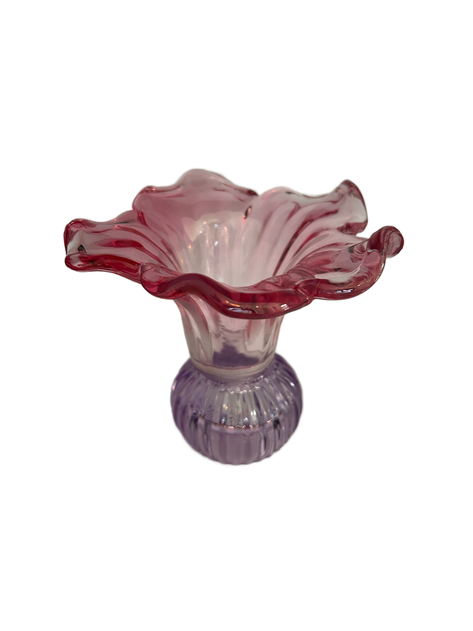 Geef je interieur een sfeervolle touch met onze glazen waxinelicht/kaars-houder in prachtige paars en roze tinten. Dit unieke item van 8 x 15 cm is perfect om te combineren met andere decoratie op je bijzettafel of vensterbank. Plaats er een waxinelichtje of kaars. Dit uniek artikel is omkeerbaar. Geniet van een warm en uitnodigend licht, of gebruik het als een klein decoratief element om je zithoek compleet te maken. Een subtiele toevoeging die direct sfeer creëert!